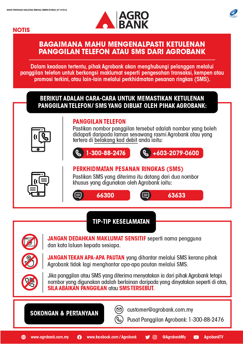 Bagaimana Mahu Mengenalpasti Ketulenan Panggilan Telefon atau SMS dari Agrobank