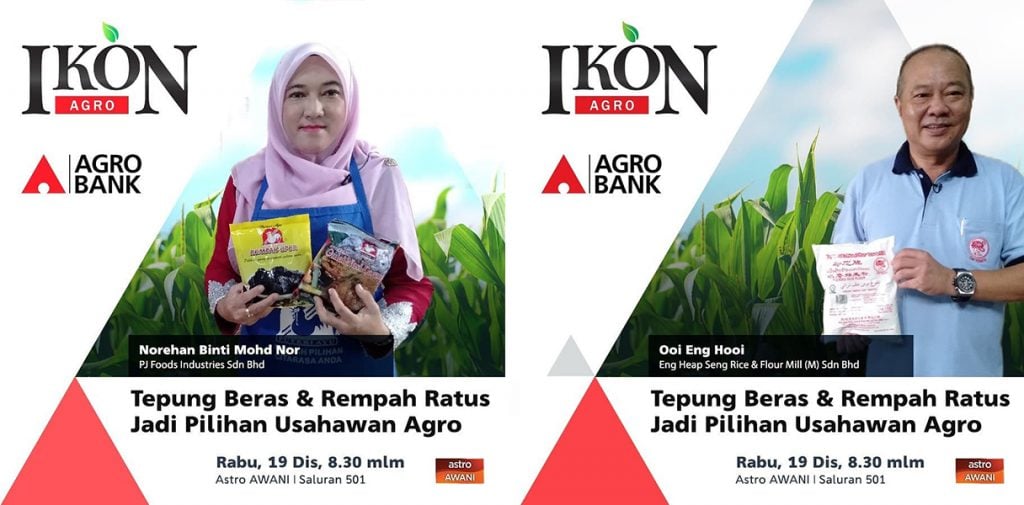 - Ikon Agro episod 21 menampilkan syarikat Eng Heap Seng Rice & Flour Mill (M) Sdn Berhad yang mula beroperasi sejak 40 tahun lalu sebagai kilang padi dan kini cukup popular dengan produk tepung beras keluaran syarikatnya serta PJ Foods Industries Sdn Bhd yang menggunakan rempah-ratus ramuan rahsia masakan ibu pemilik syarikat ini untuk menghasilkan produk ‘bintang’ keluaran mereka iaitu rempah opor Pahang dan juga rempah nasi dagang.